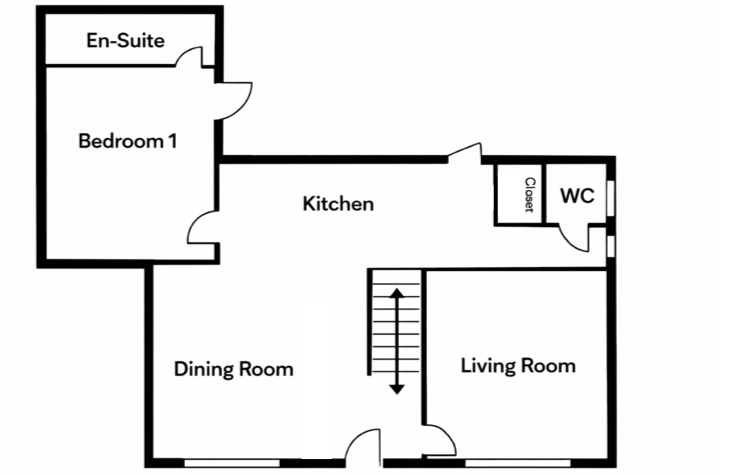 Bedroom 1 is a well-proportioned ground-floor double bedroom, comfortably accommodating a king-size bed, and benefits from a private en-suite shower room, offering excellent comfort and privacy.